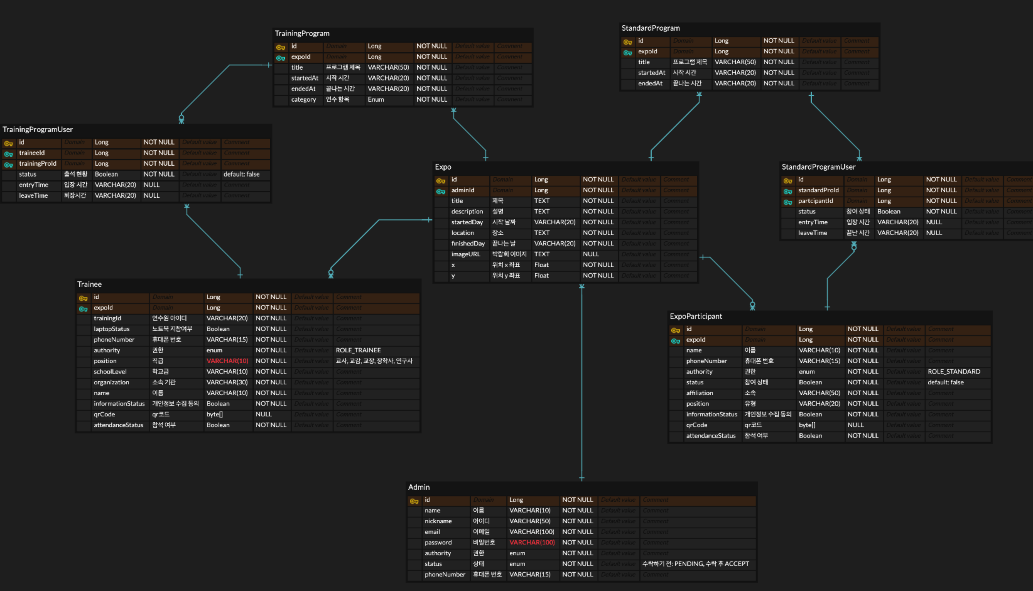 ERD를 잠깐 공개하자면 이렇게 되어있는데 예를 들어 한 코드를 보자면